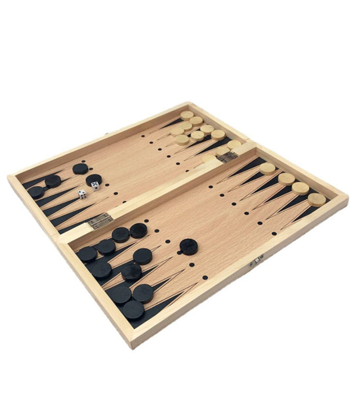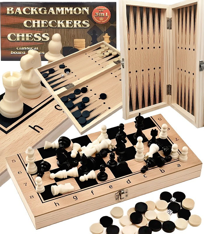 Puikus pasirinkimas šeimos vakarams ar draugų susibūrimams! Šis 3 viename stalo žaidimų rinkinys leis mėgautis šachmatais, šaškėmis ir nardais. Medinė dėžutė tarnauja kaip šachmatų lenta, o jos viduje rasite visus reikalingus žaidimo elementus – tereikia išskleisti ir pradėti žaisti!