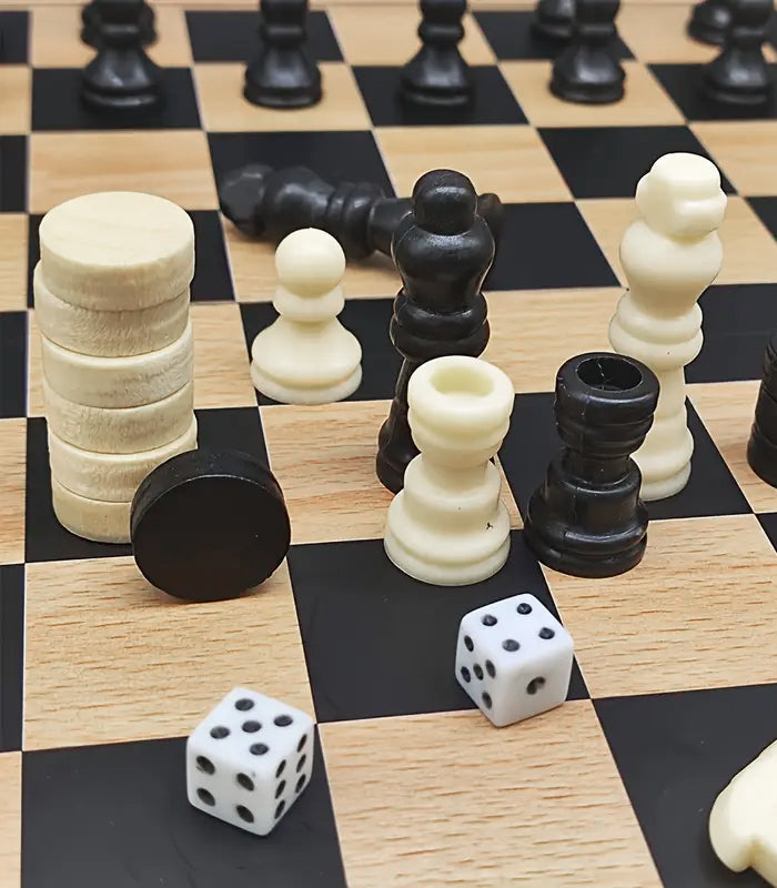 3 žaidimai viename – šachmatai, šaškės, nardai